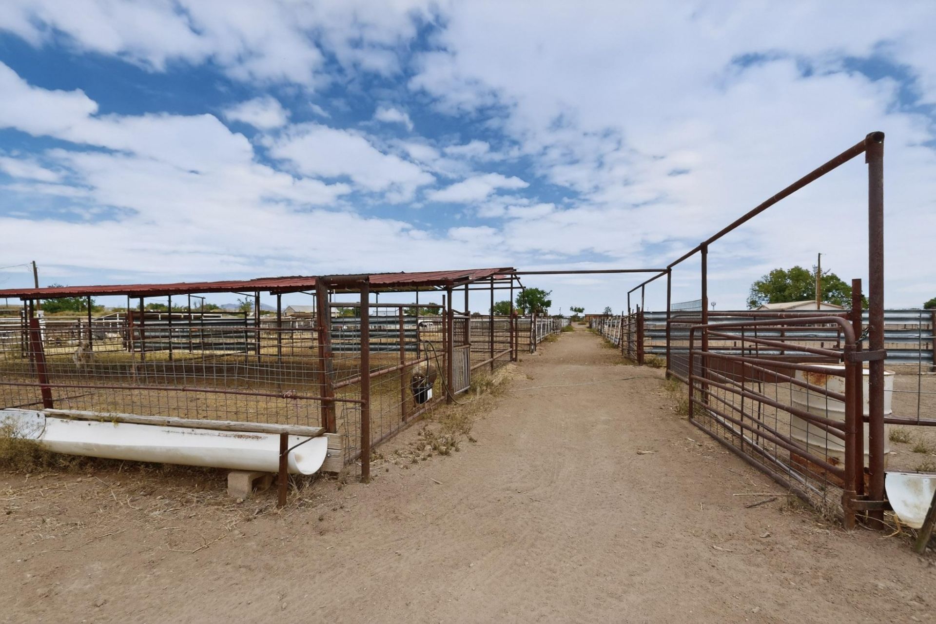 Two homes on 6.3 acres in Socorro County, offering flexible use for multi-generational living, guest quarters, or rental income. The main residence includes updated flooring, a country kitchen, covered patio, and open views. A separate second dwelling provides additional living space. The property also features a designated area for gardening or small animals, with a mix of mature and recently planted trees.Equipped for livestock, the property includes corrals, two loading docks/chutes (semi and truck), birthing stalls, a workshop, separate septic systems for each home, and a feed shed. Suitable for horses, with space to expand, add an arena, or further develop to meet operational needs.