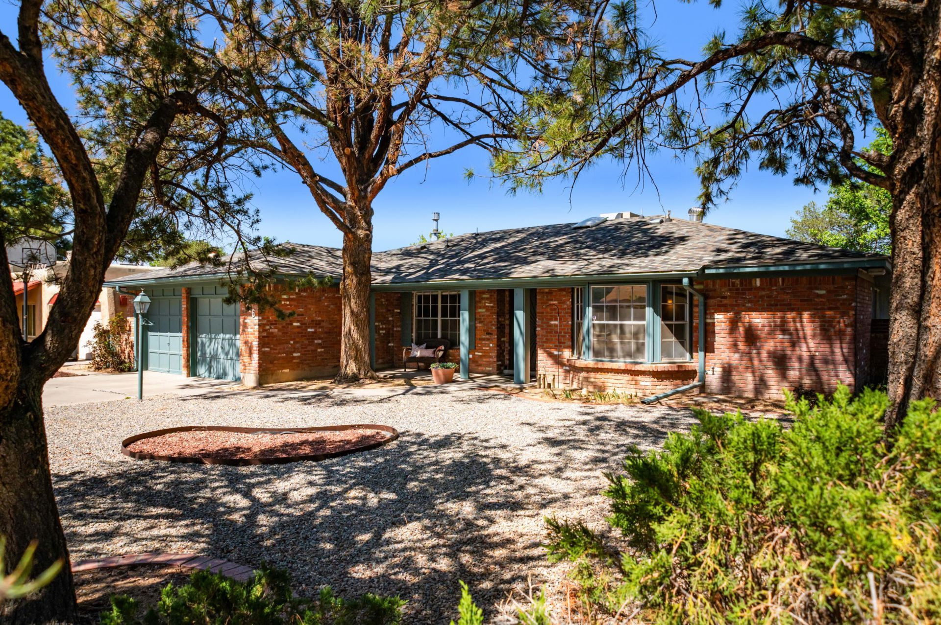 Charming brick home in an established neighborhood near Arroyo del Oso Golf Course, walking trails and more. This 3-BR layout plus front office/optional 4th BR offers flexibility, including a secondary suite with direct guest bath access. The primary suite features updated tile in shower/bath and private access to the backyard. The recently updated kitchen opens to the dining area and includes added pantry storage and a coffee bar. Enjoy light-filled living spaces and a sitting area with stunning Sandia Mnt and golf course views. Additional highlights include updated light fixtures, ceiling fans, a 2-car garage, plus a separate lower-level 1-car garage with access from Osuna--ideal for storage, workshop, recreational space or possible future in-law suite. Schedule today.